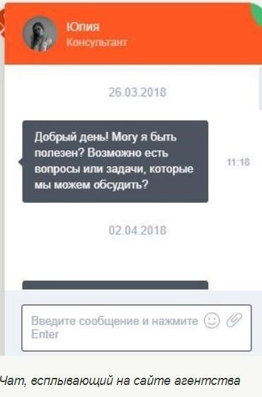 Как выглядит чат, открывающийся на сайте нашего интернет-маркетингового агентства: