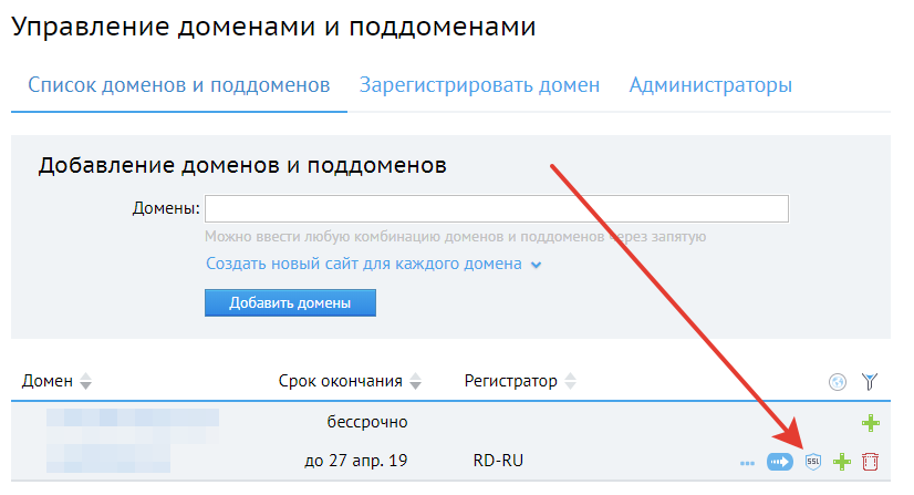2. Дальше жмем на значок SSL напротив нужного домена: