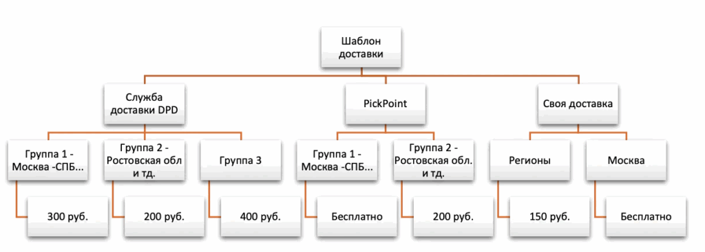 Важно правильно создать сценарий доставки. Следует прописать стоимость посылки в зависимости от товара и службы, которая будет его доставлять. Если шаблон оформлен некорректно, это повлияет на конечную прибыль.