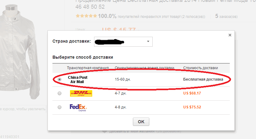 AliExpress предоставляет услуги своих партнеров по логистике: