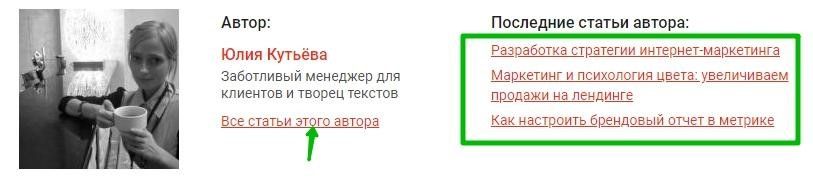 Также к каждому новому материалу, который публикуем, присваиваем авторство. Так пользователю будет проще найти новые статьи автора, которого уже читали и который уже заинтересовал.