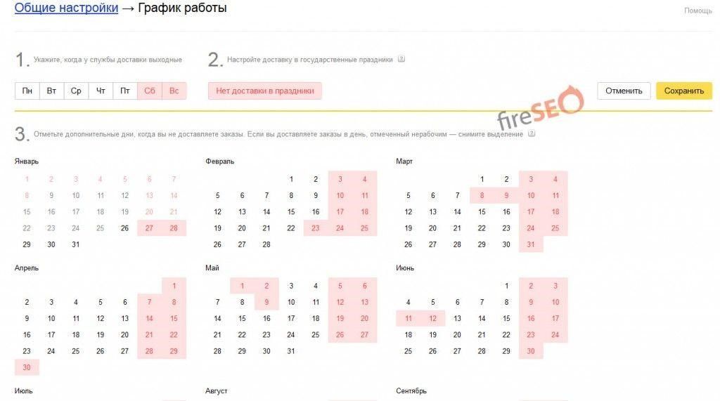 - Настройка графика работы службы доставки: