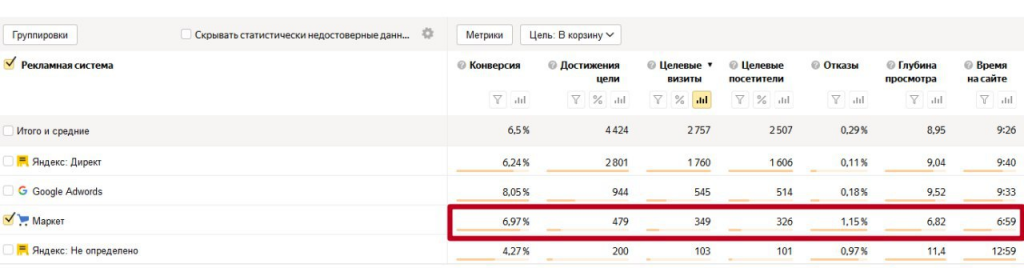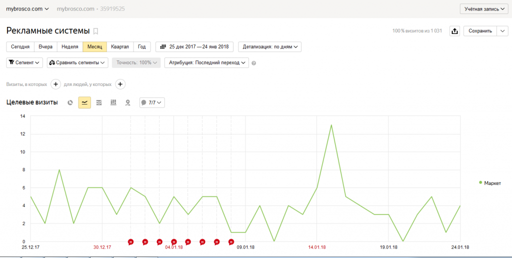Результаты в Я. Маркете для интернет-магазина mybrosco.com — конверсии: