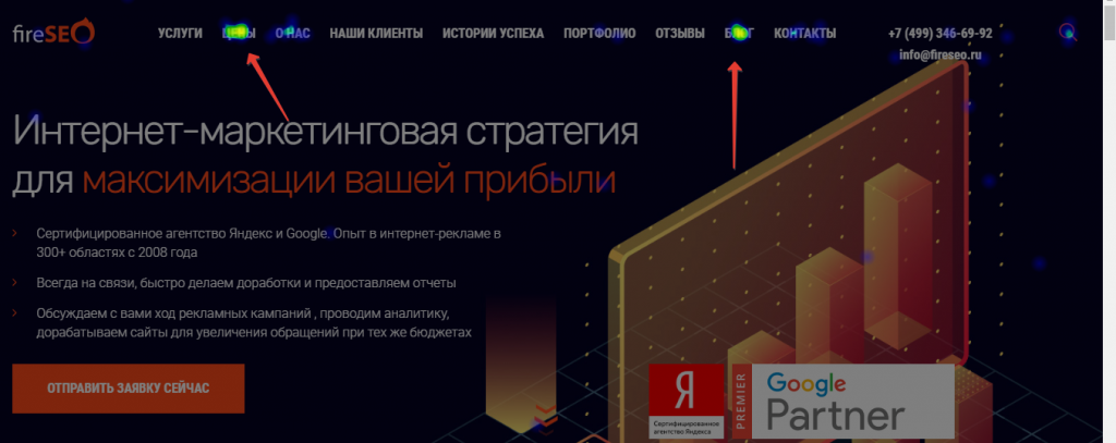 • Карта кликов — показывает, куда чаще кликают ваши посетители: