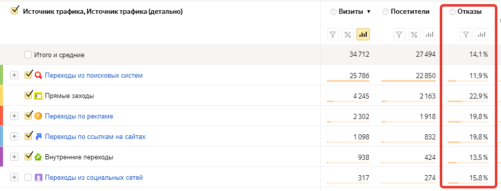 Если отказы (допустим, по контекстной рекламе) достаточно высокие, скорее всего, вы ведете не тот трафик на сайт. Кстати, есть еще скрипты, которые ставят на сайт и отслеживают активность движения мышкой — по такой активности тоже косвенно оцените качество трафика в целом.