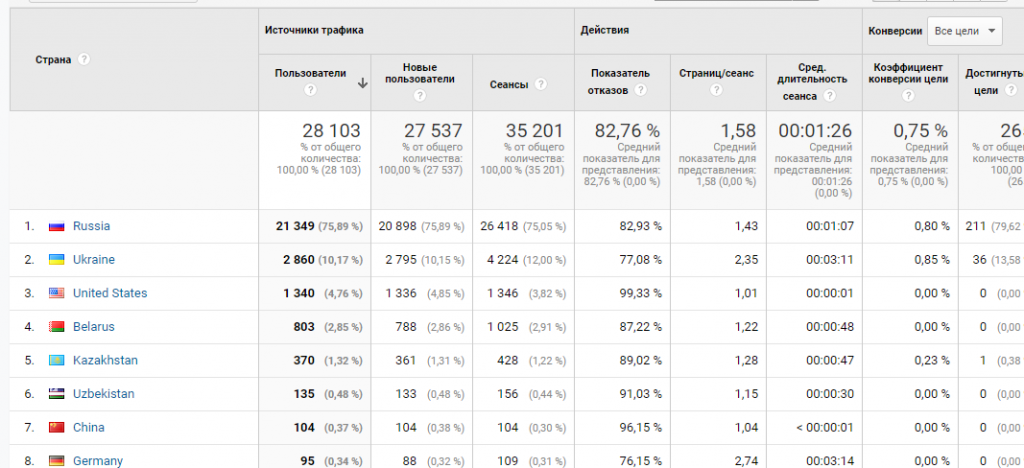 Почему начали не с конверсий? Потому что бывают случаи, когда у клиентов нет настроенных целей на сайте, и тогда можно хоть что-то понять по тем же отказам. А как же тогда понять, что трафик на сайт идет целевой? Надо настраивать цели — они же по сути и есть ваши целевые конверсии.