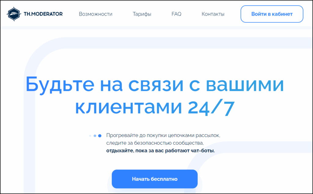 Конструктор Thmoderator поможет создать чат бота в Телеграме. С помощью сервиса можно настроить прогревающую воронку, прописать сценарии для ботов, которые будут общаться с клиентами с помощью кнопок в интерфейсе чата. Разработчик сможет сделать своего бота многофункциональным. Если человек желает просто попробовать себя в этой профессии, он может использовать пробный период.