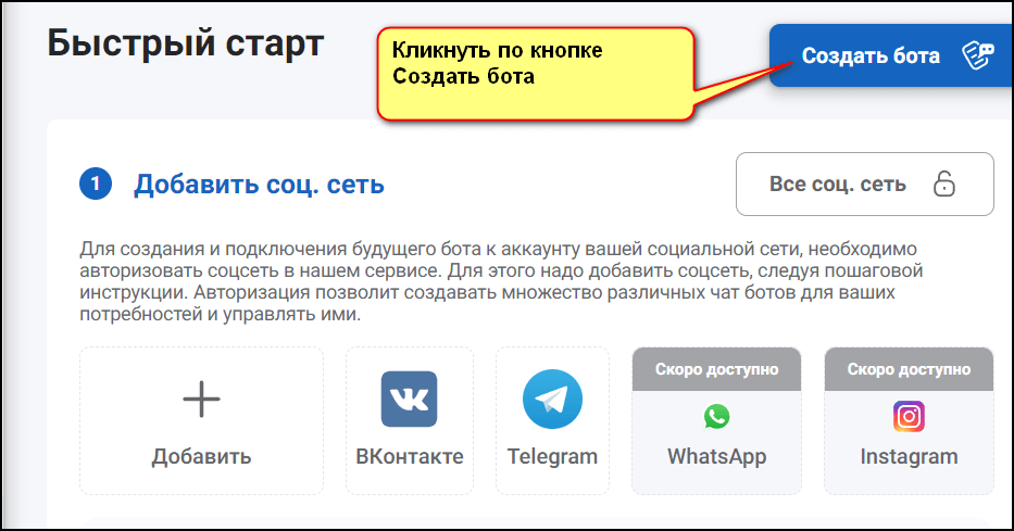 5. Кликнуть по кнопке «Создать бота».