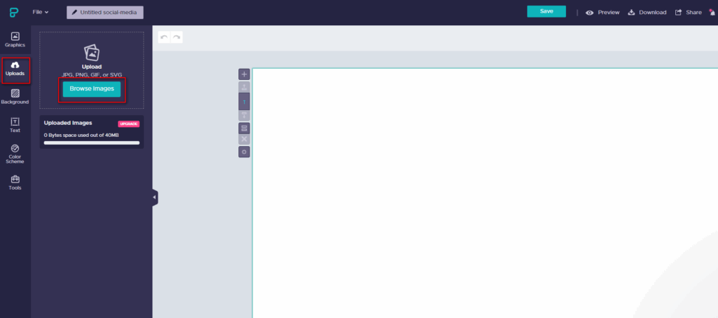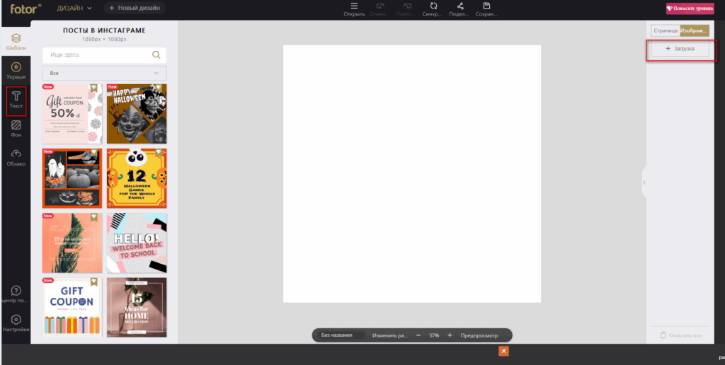 1. Загрузите картинку или выберите шаблон/фон из библиотеки редактора.