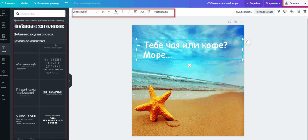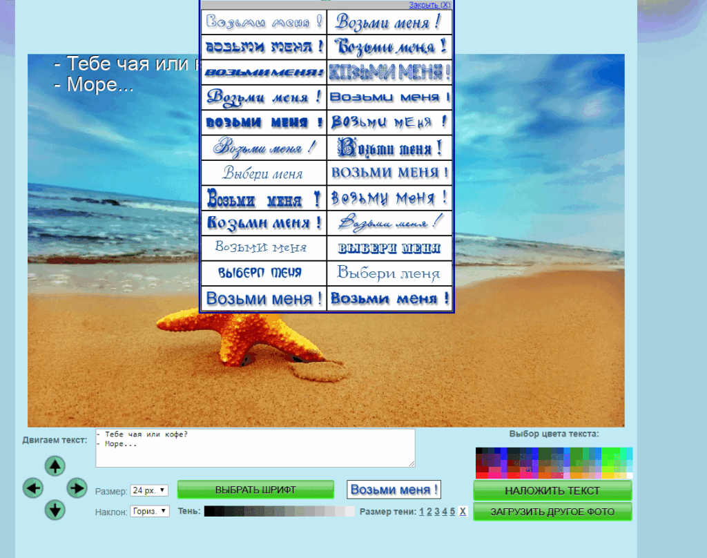 3. Создаете свою надпись, после чего можно скачивать фото на компьютер.