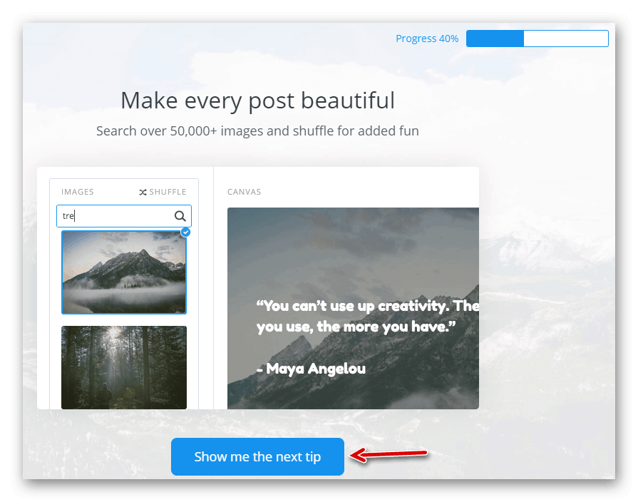 В онлайн-сервисе Pablo 6-тысячная библиотека стоковых картинок. Здесь не требуется регистрация.