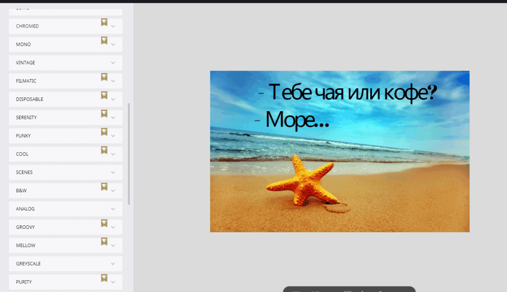 - При желании, картинку можно отредактировать эффектами, которые не помечены золотой звездочкой.
