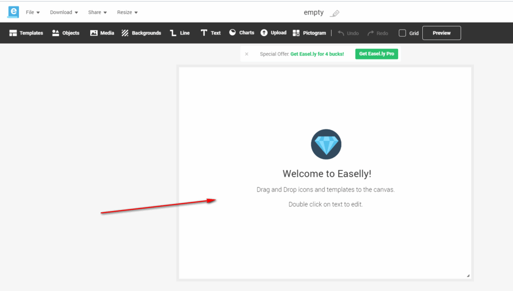 Easelly – англоязычный сервис, где основные возможности доступны в платном аккаунте. Но, чтобы написать текст на изображении, хватит и бесплатной версии.