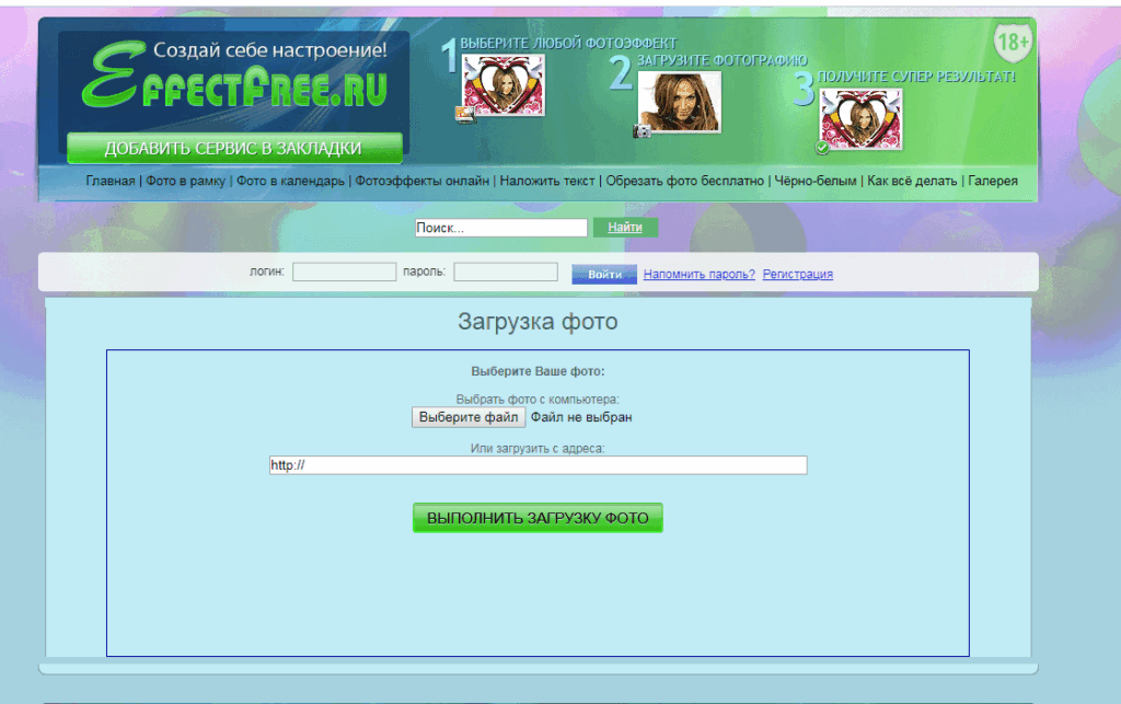 Effectfree – простой бесплатный онлайн-сервис, чтобы добавить текст на фото. Помимо этой функции, есть еще возможность создавать рамки и различные спецэффекты (правда, на «любителя»).