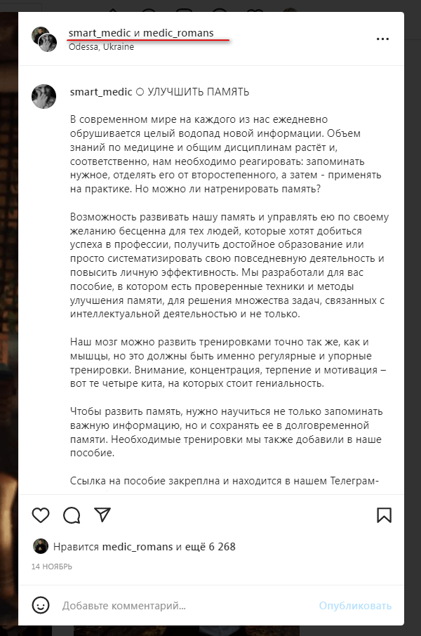 Пост в соавторстве выглядит так