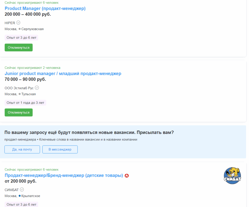 Также, согласно этой же площадке, больше всего вакансий опубликовано в Москве — больше 600. С большим отрывом на втором месте находится Санкт-Петербург, в котором открыто 128 вакансий на должность продакт-менеджера.