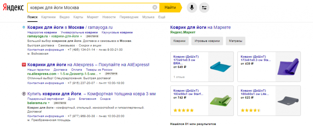 - в общем поиске Yandex;