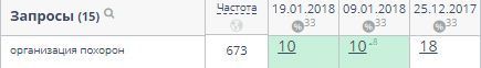 Перед началом работ по продвижению – по запросу «Организация похорон» страница висела в ТОП-30.