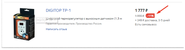 - Включенную опцию «Автоматический показ скидок», добавляющую на предложение красную плашку со скидкой, если произошло понижение цен на 5% и более. Для этого не нужно передавать данные об акциях через выгрузку. Опция была выключена.