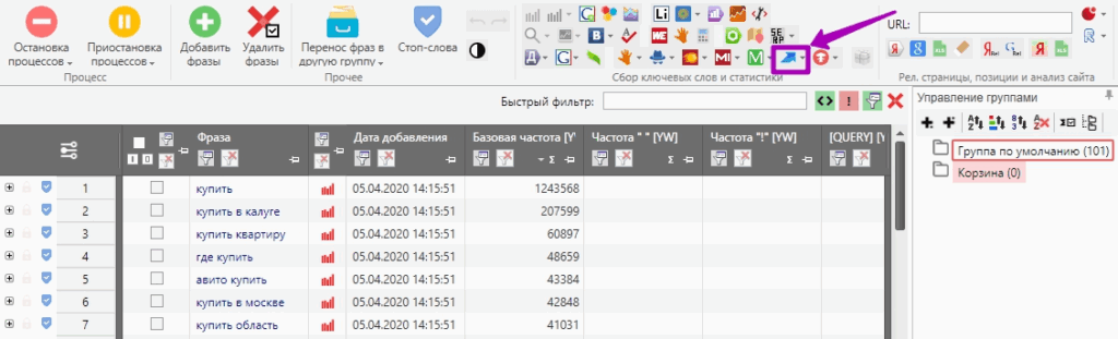 1) Собираем фразы с помощью инструмента «Анализ ключевых фраз»:
