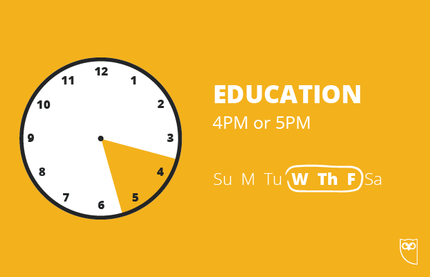 Как известно, учащиеся уже в четверг далеки от учебы и все чаще начинают отвлекаться на ленту Инстаграма. Четверг ближе к вечеру – хорошее время для выхода постов с интересующими студентов темами. В среду и пятницу – также неплохие дни.
