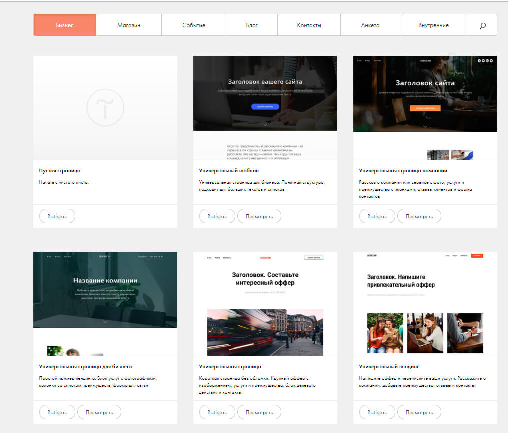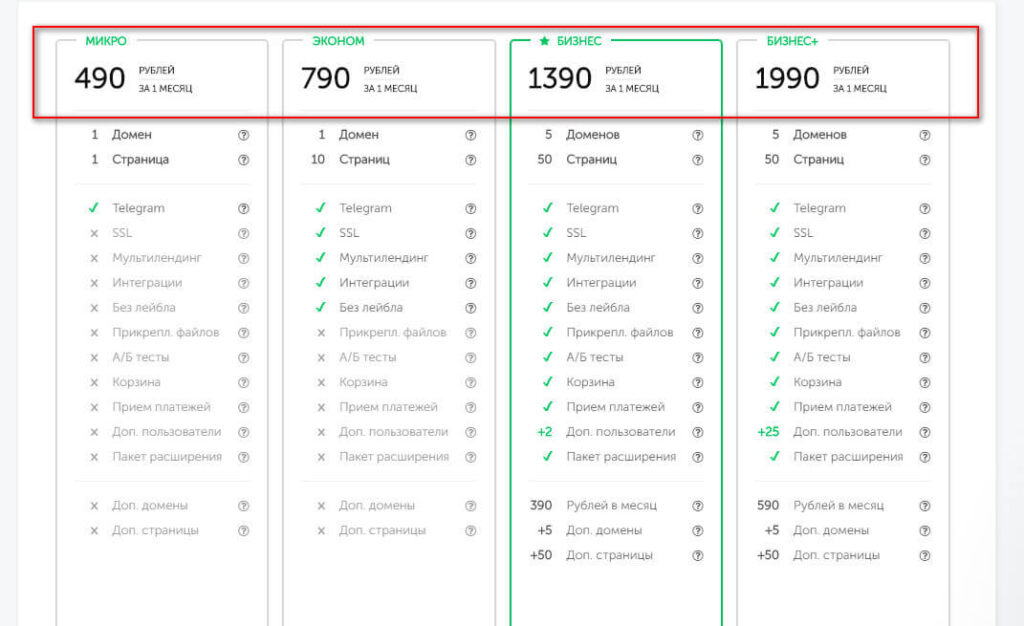 Стандартный конструктор посадочных страниц, который на всех тарифах предлагает: