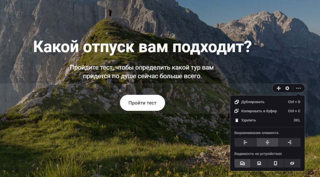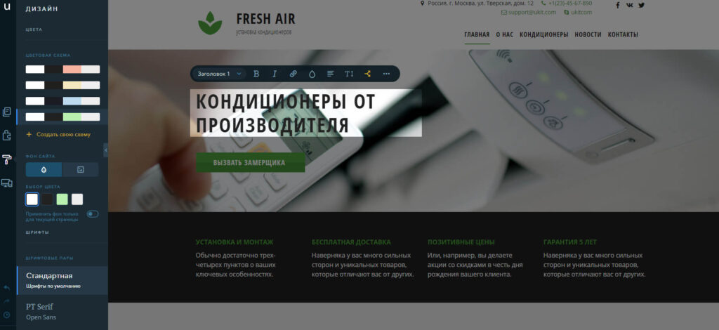 Возможности этого конструктора более скромные, чем у предыдущего, но создать привлекательный одностраничник в нем также просто.