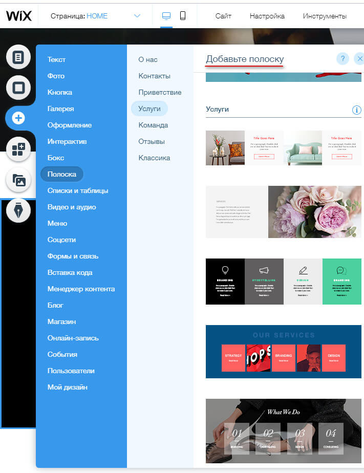 В целом любой элемент или блок можно гибко настраивать. Для создания лендинга очень удобны полоски. По сути, это готовые контейнеры со стандартной информацией: