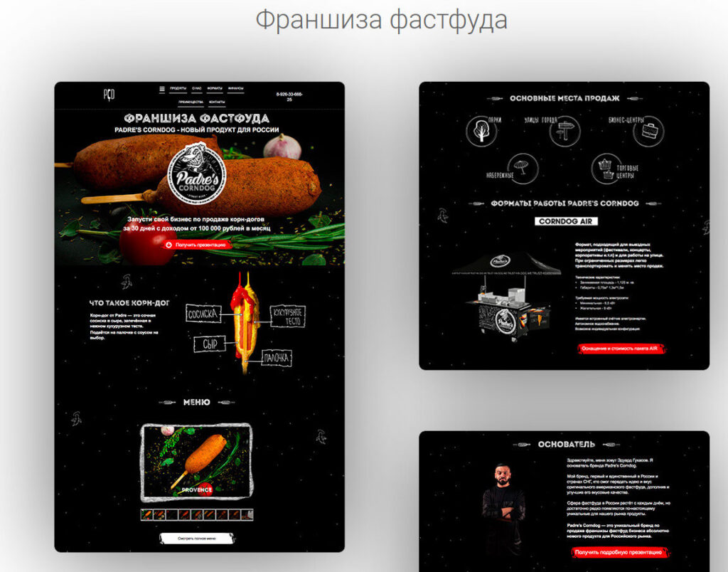 • контакты – то есть имеются все блоки, из которых состоит классический landing-page.