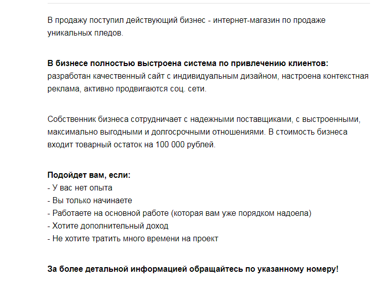 Также не стоит вестись на объявления, где заявленная прибыль в месяц чуть ниже, равна или немного больше цены на сам интернет-магазин. Кто будет продавать доходное дело?