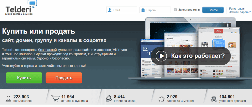 Telderi – пожалуй, самый популярный ресурс по покупке сайта или интернет-магазина. Отметим, что на бирже продаются веб-сайты, а не бизнес целиком.