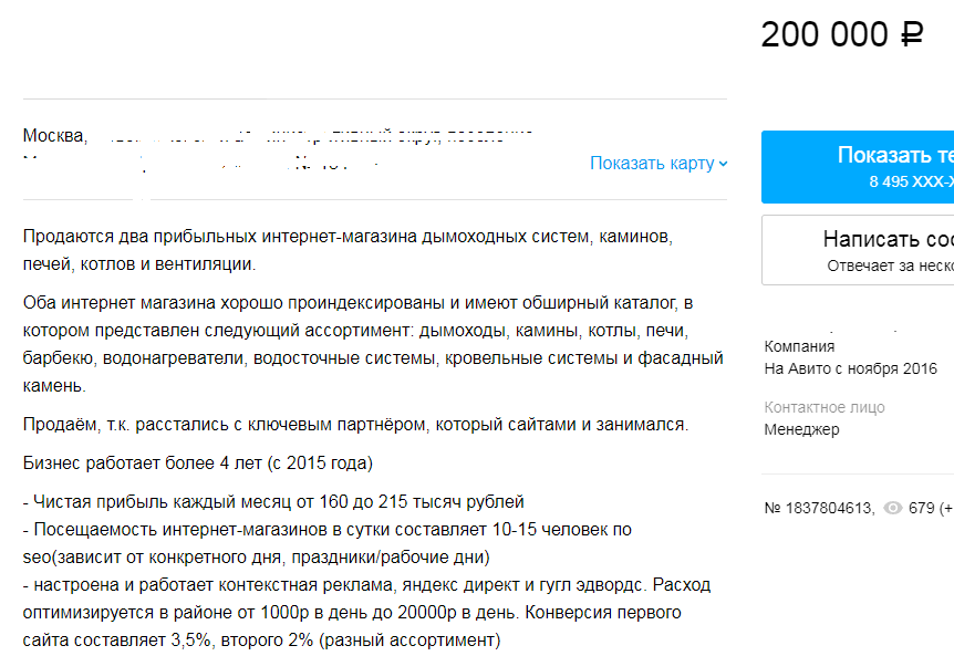 Авито – доска объявлений с множеством предложений по покупке сайта или готового бизнеса. Предложения самые разные, причем есть и очень дешевые. Вот их следует проверять внимательно, так как на Авито может разместиться кто угодно.