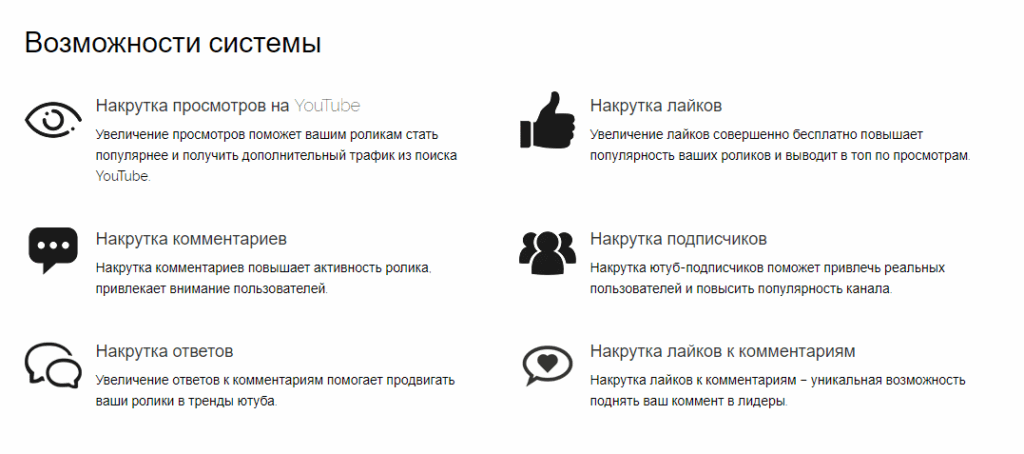 Этот сервис направлен исключительно на раскрутку и поддержание YouTube каналов. Тут используется ранее указанная схема взаимных раскруток, за счет чего заказчики получают реальные просмотры, лайки, и активных пользователей. В качестве первого бонуса, новый пользователь получает 25 баллов, которые он может потратить на оплату одной из услуг по продвижению.