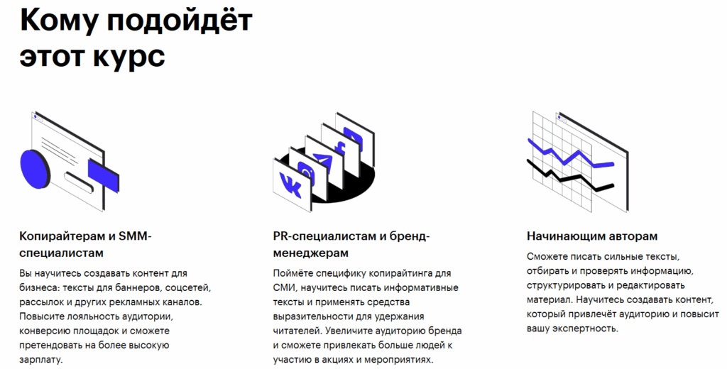• Биржевых авторов и тех, кто не работал со статьями профессионально. В ходе занятий студенты рассмотрят особенности текстов разных форматов и как их писать.