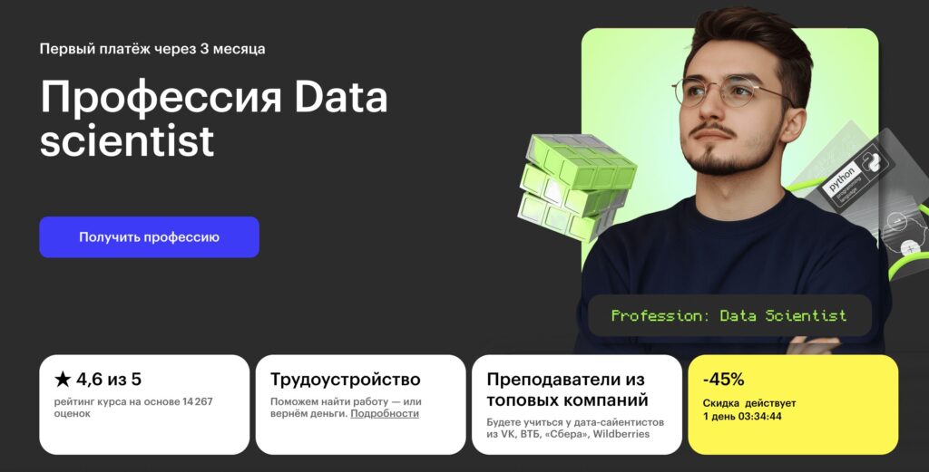 5. «Data Scientist с нуля до Junior» от Skillbox