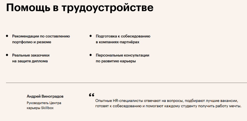 из описания с сайта Скиллбокс