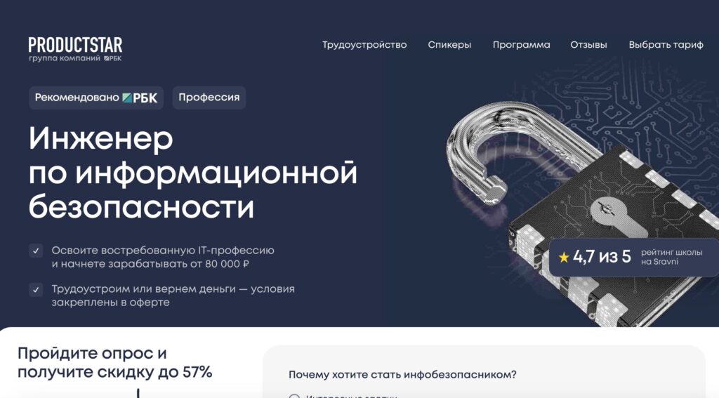 4. «Профессия Инженер по информационной безопасности» от ProductStar