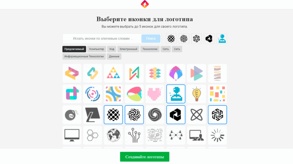 3. Выберите до 5-ти иконок, которые вы хотите видеть в вариантах логотипов