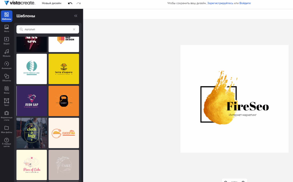 После этого нужно нажать “Создать логотипы” и зарегистрироваться.