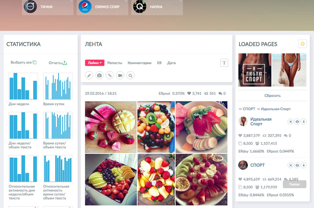 Сайт поможет сравнить и проанализировать эффективность публикаций. Popsters позволяет проводить анализы в различных срезах: