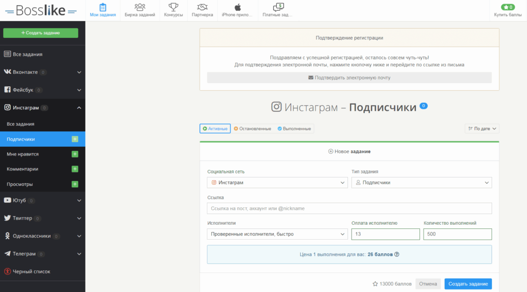 Это также площадка по накрутке лайков и подписчиков, работающая по принципу биржи. Накрутку можно купить, а можно заработать баллы на нее, выполняя задания для других блогеров.