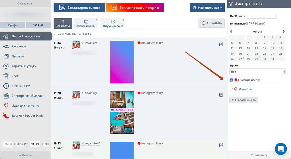 Те, кто продвигает свой профиль, не могут обойтись без сторонних платформ. В них можно загрузить контент хоть на месяц вперед, выставить время публикации, установить фото. После этого контент будет появляться точно в срок без вашего участия. Отложенный постинг есть в перечисленных выше площадках автопродвижения, а также в других: