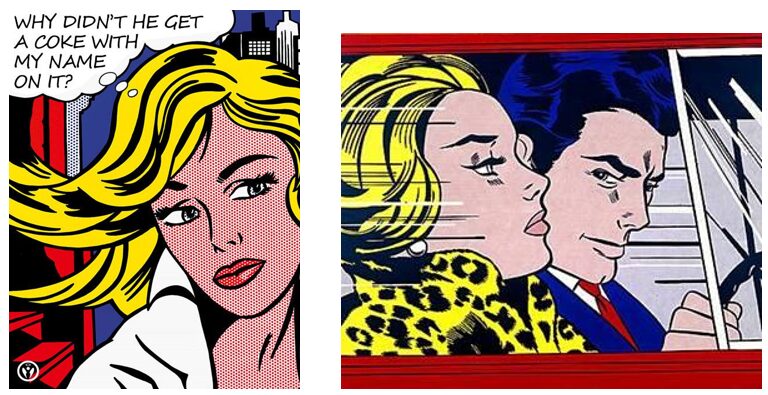 Кроме шедевров Уорхола, известны и работы гения поп-арта Роя Лихтенштейна. Вы встречали их в оформлении книг эпохи постмодернизма (Н. Саррот, Анри Роб-Грийе, У. Эко и другие), замечали в элементах дизайна одежды, обуви, декоративных подушек и прочего.