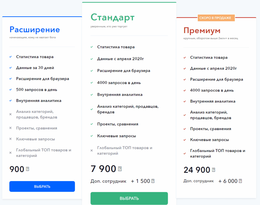 Вы можете выбрать из трёх тарифов: внутренняя аналитика, внешняя аналитика + SEO-оптимизация и профи (все возможности платформы). Есть тарифы на сутки от 169 рублей/ в день, 1490 рублей/ в месяц тариф профи.