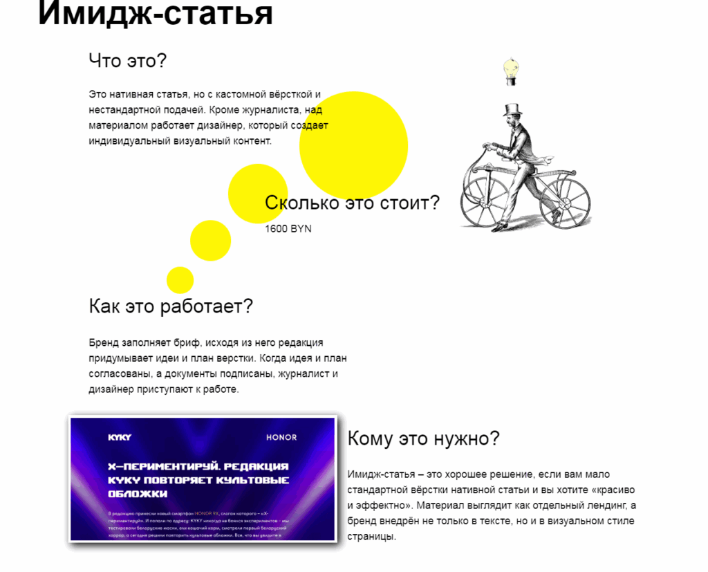 Подробно описанный один из форматов рекламных статей от Kyky