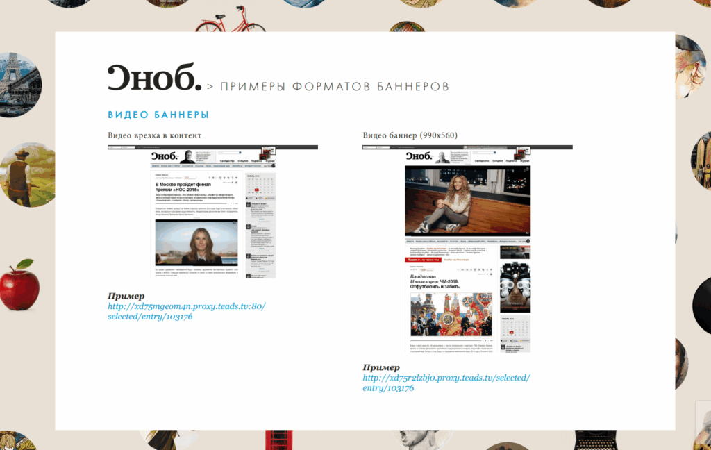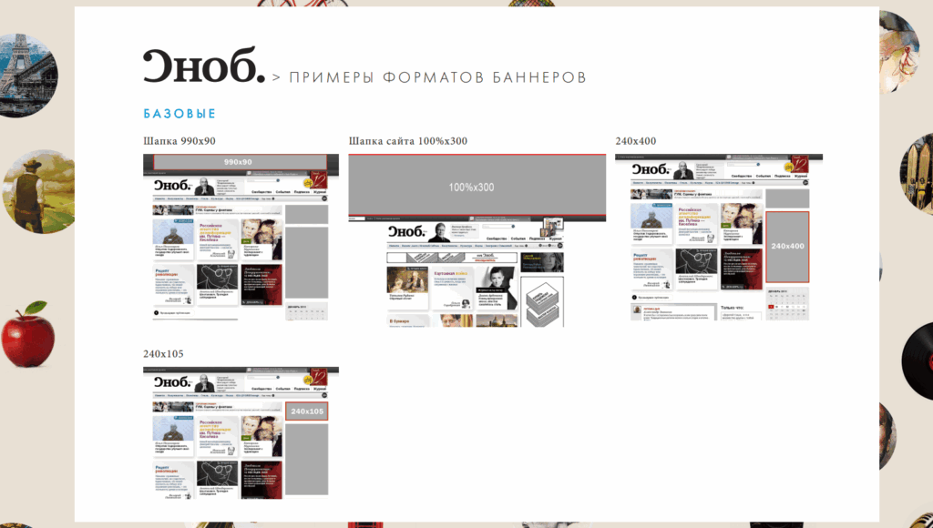 Пример размещаемых баннеров в журнале “Сноб”