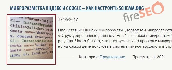 Теперь нам нужно вывести изображение, сильно необходимое Google для формирования сниппета.