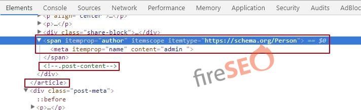 Далее переходим к микроразметке автора статьи. В нашем случае такого поля нет, так как автор статьи не указывается.