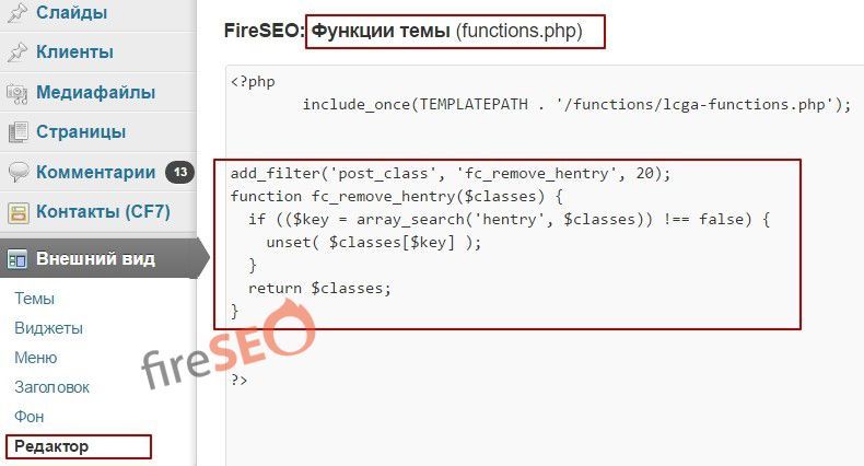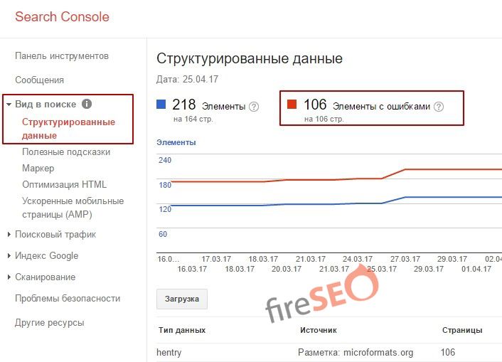 Поэтому, встроенную микроразметку hentry, которая в Google Search Console выдает нам 106 ошибок – необходимо просто удалить.
