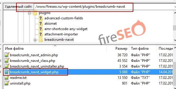 В нашем случае мы добавим эту строку кода через исходный код виджета breadcrumb_navxt_widget.php